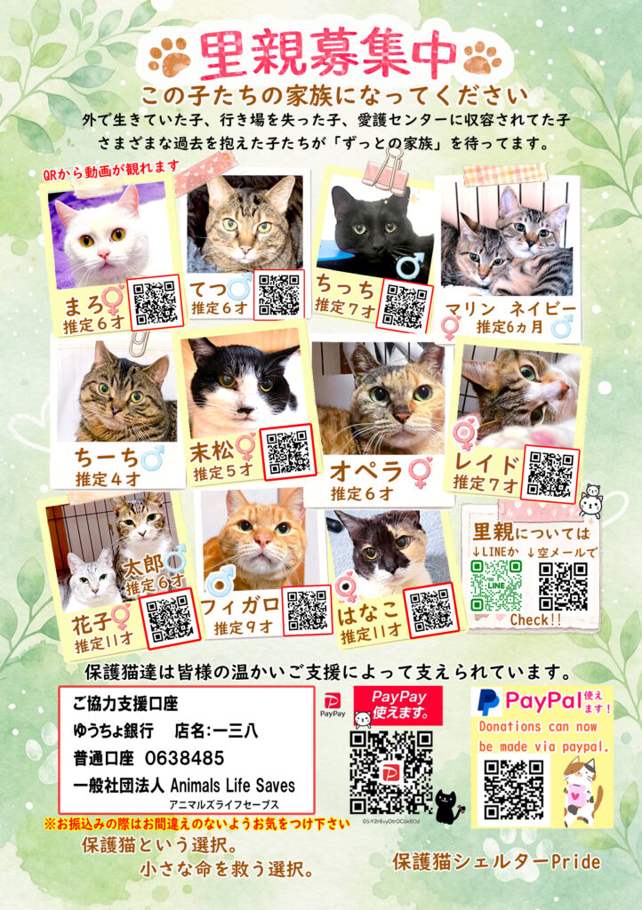 保護猫達のためにどうぞよろしくお願い致します。